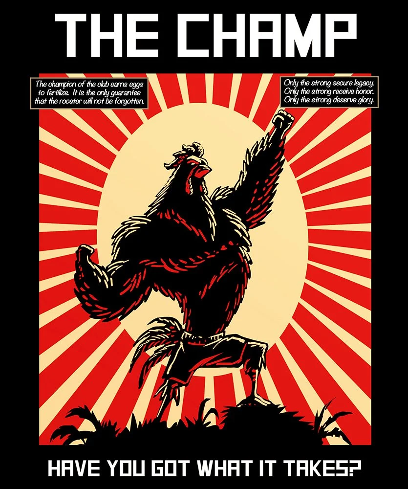 Rooster Rumble Fight Club is the story of a young fighter to moves to the Big City in pursuit of his dreams. He wants to join The Rooster Rumble Fight Club and become champion. After a terrible pandemic hit the globe and wiped out half of the female population, the Club became chicken-kind’s only hope of survival. But not everything is as it seems and the sinister truth behind the Club will soon be revealed. Fight for Honor. Fight for Glory. Fight for Legacy. What do you fight for?